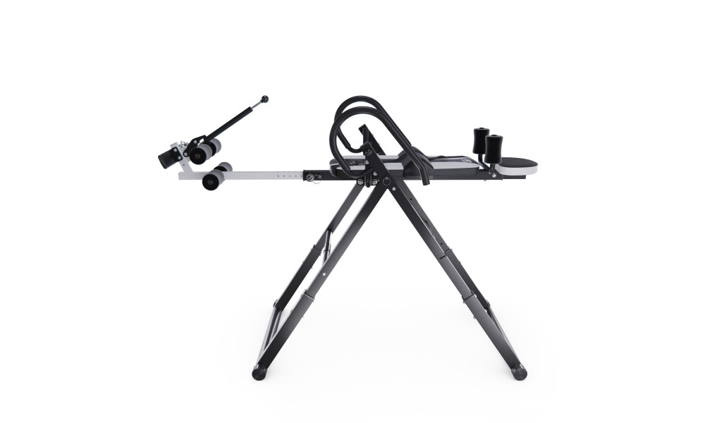 Инверсионный стол DFC IT6312A-W — это удобный и эффективный тренажёр для улучшения осанки, укрепления связок и улучшения кровообращения. Он имеет спинку белого цвета с валиками под голову и съёмную подушку под поясницу для дополнительного комфорта. Страховочный ремень входит в комплект, двойные валики для удобства использования. Максимальный вес пользователя составляет 150 кг. Ограничитель угла наклона в виде перекладины позволяет регулировать угол наклона в трёх положениях. Складная конструкция стола облегчает хранение и транспортировку.