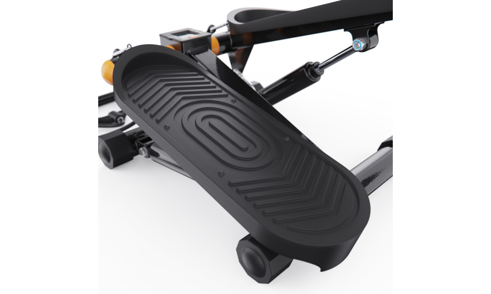 Степпер оснащён гидравлической системой нагрузки, которая обеспечивает плавный и тихий ход педалей. Вы можете механически регулировать уровень нагрузки, подстраивая интенсивность тренировки под свои цели и физическую подготовку. Максимальный вес пользователя — 110 кг, что делает тренажёр универсальным для большинства пользователей.